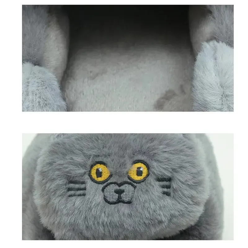 Le Chausson Chat Gris ne cherche pas à être discret. Dès le premier regard, il impose son style avec sa bouille féline ronde, ses yeux jaunes expressifs et sa silhouette moelleuse qui donne immédiatement envie d’y glisser les pieds. Ce n’est pas juste un chausson, c’est une présence à part entière dans la maison.