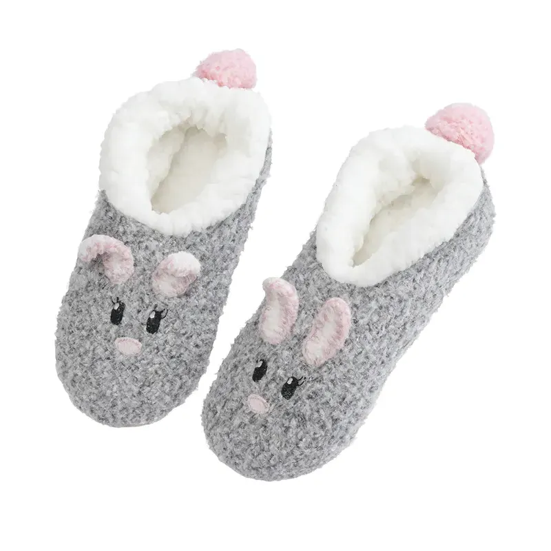 On parle d’un modèle gris tout doux avec des petites oreilles roses, un museau trop mignon et un intérieur bien moelleux. Résultat : vous marchez, et ça donne instantanément une vibe “cocooning stylé”, sans effort… et sans devoir négocier avec des chaussons lourds comme des parpaings.